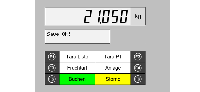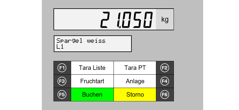 Nach einer Gewichtserfassung erwartet die Waage eine Laständerung (Entlastung). Das mehrfache Erfassen von ein und derselben Erntekiste ist somit nicht möglich. Ist eine Kiste dennoch fälschlicherweise erfasst worden kann das aktuelle Gewicht über die Stornofunktion mit Minusvorzeichen als Storno gebucht werden.